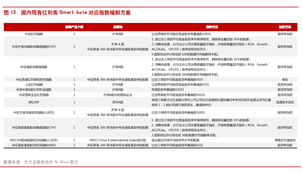 •红利类Smart Beta策略兼具长期逻辑性和有效性,策略稳定性较好,符合市 场主流投资理念,易被投资者理解和接受,产品自推出以来受到投资者的青睐。