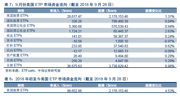 申赎概况:9 月份美国 ETF 市场共流入 367 亿美元,成为 2018 年净流入第二大月份