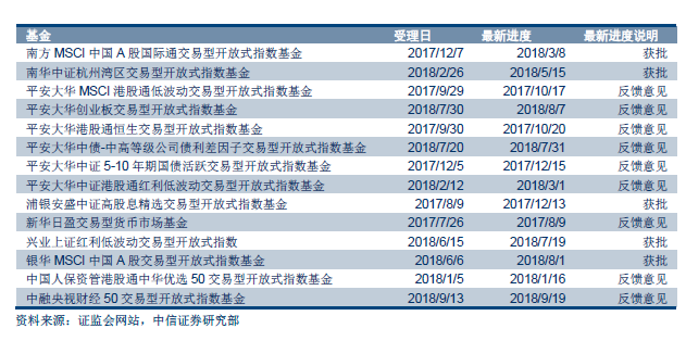 ETF 募集审批情况见下表,共有 32 只 ETF。<p align="center">