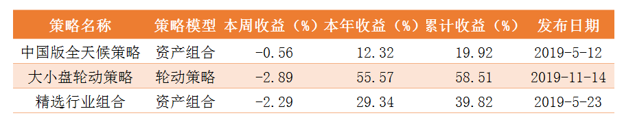 受大盘和消费板块回调影响,本周ETF之家创建的3只类策略全部回调,详细数据如下: