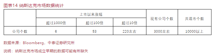 此前,中泰证券的李迅雷团队做过相关统计。纳斯达克IPO企业发行时平均PE为负,但也并不影响投资价值,我们看纳指过去10年涨了接近6倍。