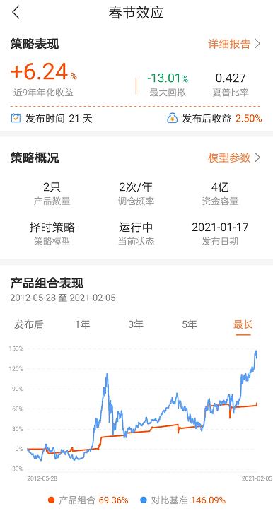 最后,再聊聊ETF之家此前设计的“春节效应”策略,回头看刚好开仓在近段时间最低点,目前已经吃肉: